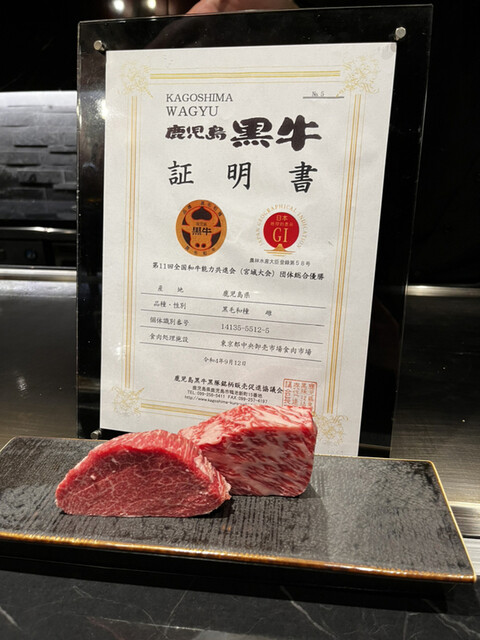 鉄板で目の前に焼かれていくお肉の匂いが甘ーい良質な脂の匂いが最高\( ˆoˆ )/