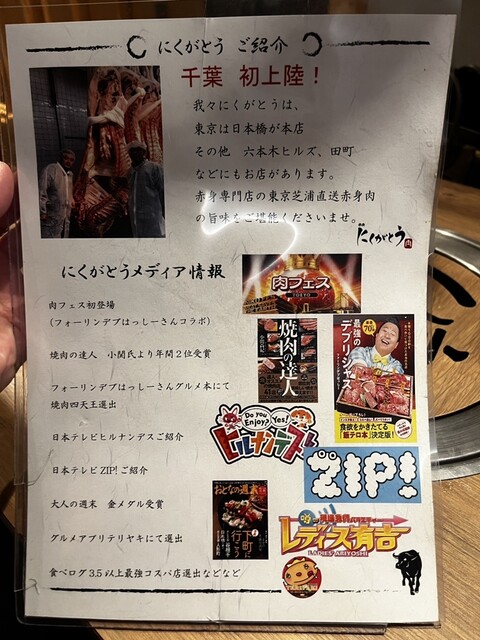 こちら百名店にもなっている都内で有名なテレビにも登場されているにくがとうさん。都内だと紹介会員制が多いにくがとうさんだが、千葉は紹介会員制ではないとのことで近いので行ってきました。