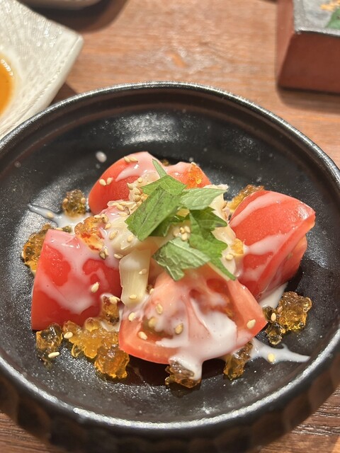 これは何?と思ったら、まさかのトマトにガリという不思議な組み合わせ。だけど食べてびっくり意外と合うのね!!大葉もアクセントになってこれは家でも真似したい。