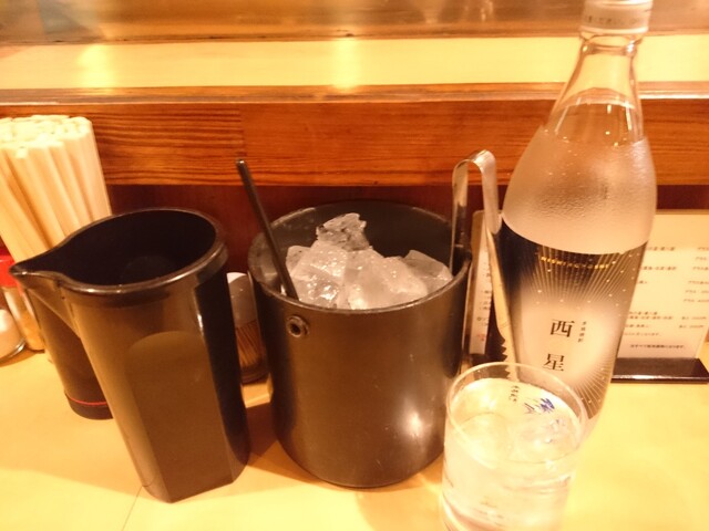 水割りセット と頼むと こんな感じで 氷がいっぱい来ます。