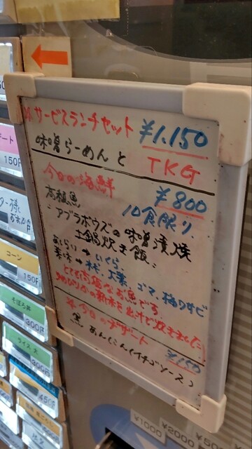 ホワイトボードには今日のおかず・オススメ・お刺身が