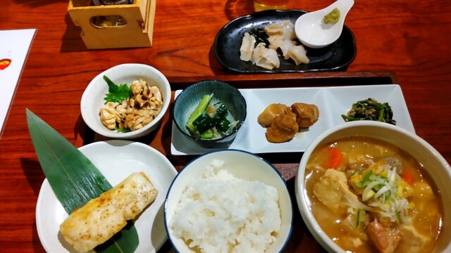 (豚汁並盛り、ご飯、お漬物、おかず2品)