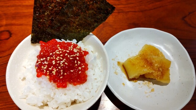 日替飯 300円、味噌らーめん 850円、この日の日替飯は「平政とホタテのイクラ和え」になります