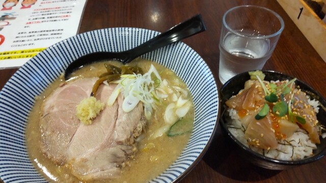味噌らーめん 800円、海鮮バラちらし 500円
