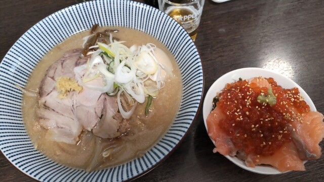 週末限定飯 サーモンと自家製イクラのおやこ飯(限定12食) 800円、味噌らーめん 1200円、味玉 150円、赤星 700円