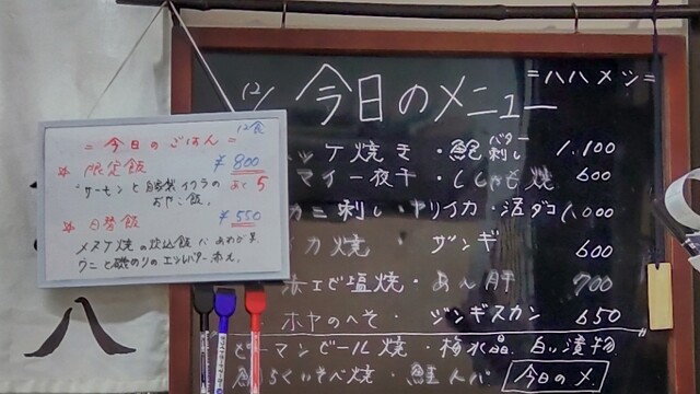 海鮮タルタル(サーモン、白つぶ、トビッ子) 350円、ゆめぴりか(釜炊き・北海道産A米) 250円