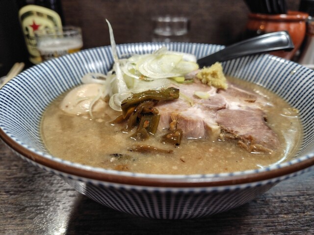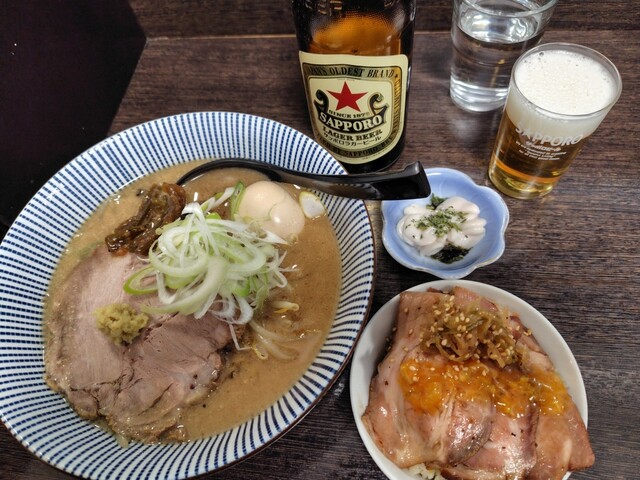 味噌らーめん 1200円、味玉 150円、赤星 700円、八堂八海宝漬 800円
