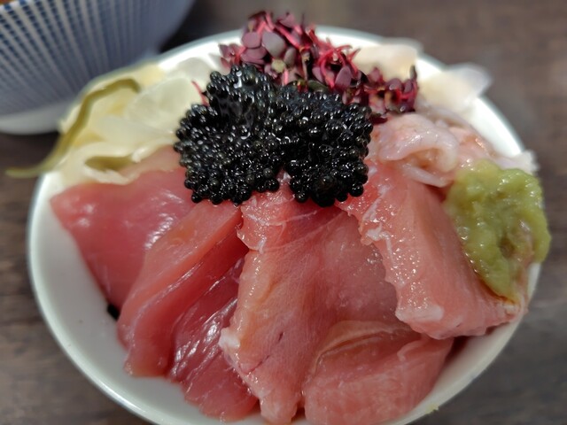 この日の週末限定飯は「生本鮪三種のせキャビア添え」でした(๑´ڡ`๑)
