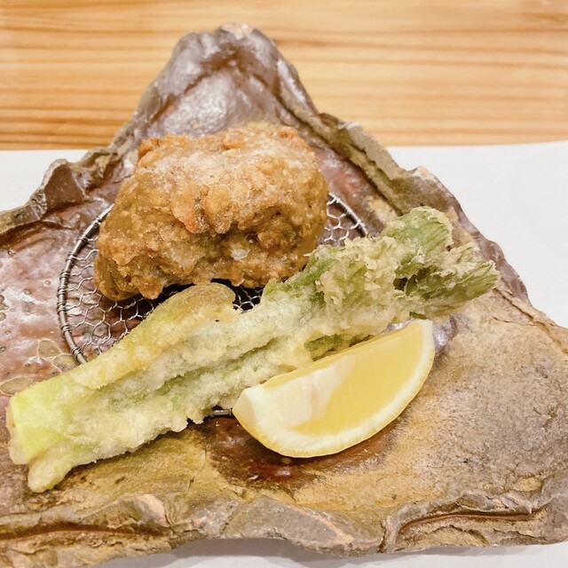 天ぷら:三陸広田湾産 牡蠣、銀杏、春菊