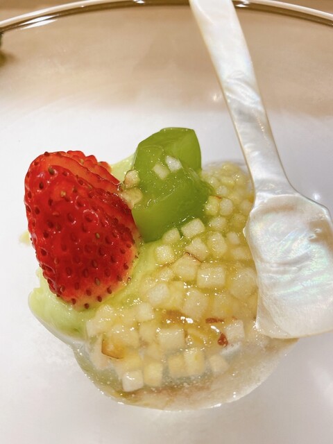 淡路島産新玉葱のジュレとポン酢が、甘味と酸味のバランスが素晴らしくマッタリ感と相まり、