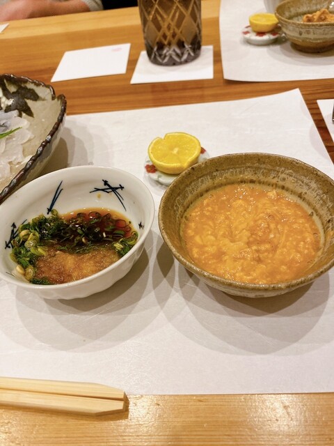 あん肝の風味が豆腐に仕立てる事で素晴らしい滑らかさでした。