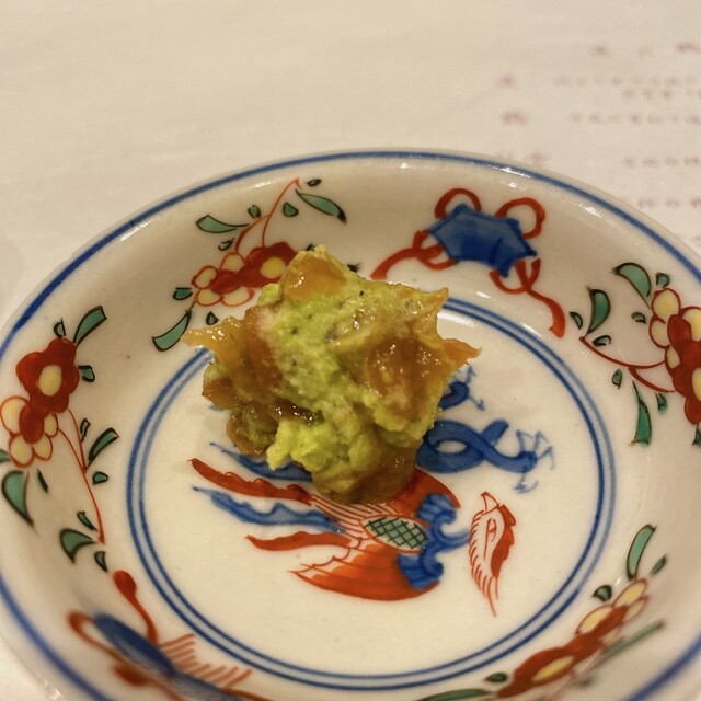 更に、胡桃白胡麻クリームの白和えの上に、海老の頭から抽出したジュレがコクを増しています。