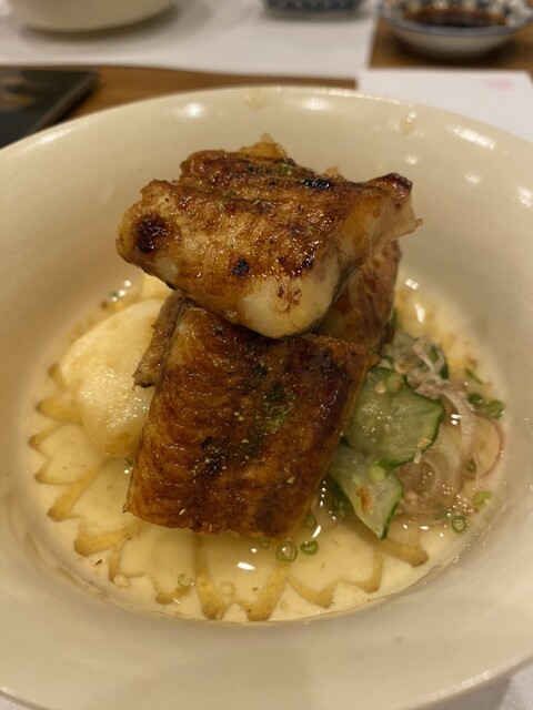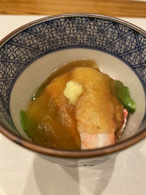 鱧の骨から抽出したうしお汁をベース一番出汁のミックスにより、素晴らしい味わい深さで優しい味です。