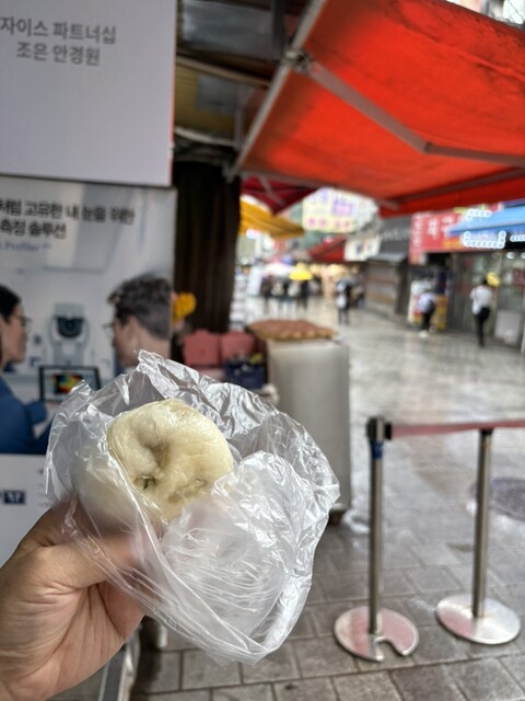 開店して間もない頃に訪問。店内で食べられるような感じでもなかったので、テイクアウトしました。普通のものとキムチ味をオーダー。キムチの方はシャキシャキとした食感で旨みもありおいしいですが、ここは普通のものが絶品でした。肉まんと餃子の間ようなモチっとした皮に、春雨とニラと肉が入った餃子のような旨みの餡でした。これがとても美味しく、おそらくビールにもよく合うと思います。機会があれば再訪したいと思います。