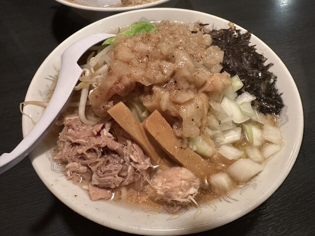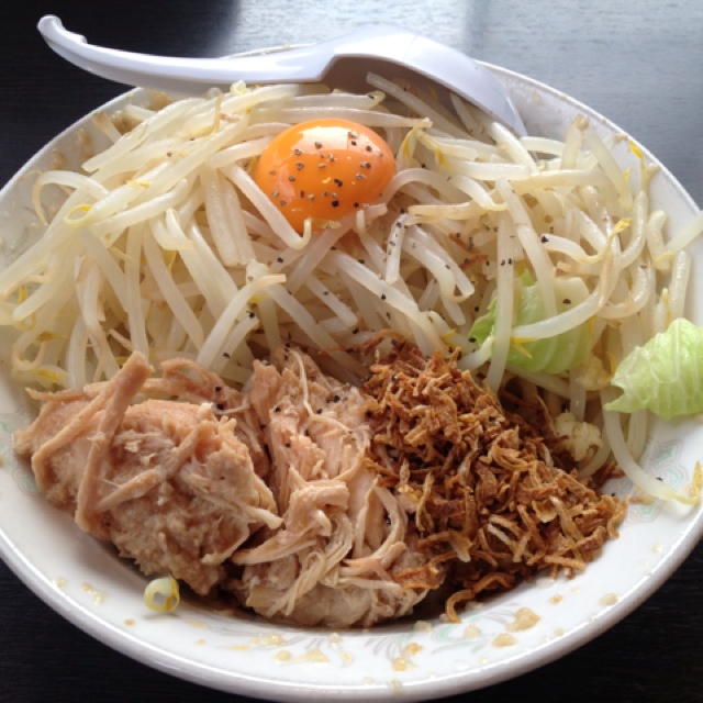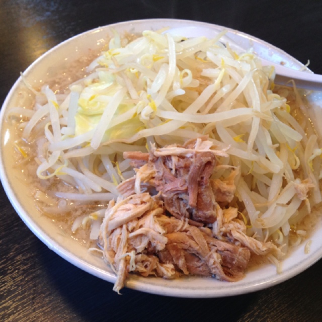 いつものワシワシの太麺に、たっぷりもやしと肉とニンニク。信州人大好きなしょっぱめの味噌スープ。期待を裏切らない美味さ。量も多い。