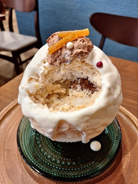 全体をこれでもか!とたっぷり覆ったカマンベールクリームが美味しすぎました!これ本当に大好き!もったり!ほんのりチーズのクセあり!でも食べやすいしおみかんシロップともあう!