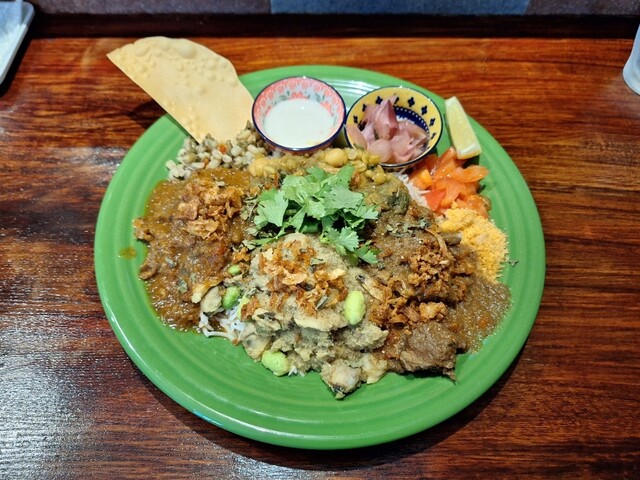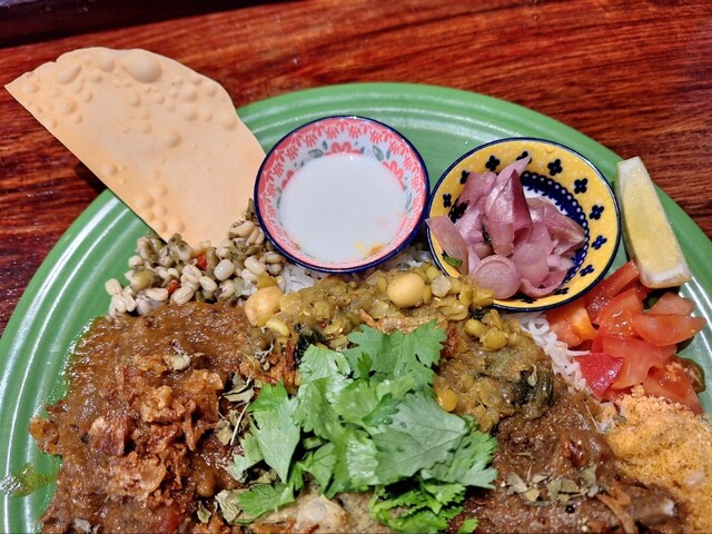 具がしっかりあって、ペーストっぽい水分量で、辛さもちょうどよくて、スパイスの香りもよくて、副菜の味覚に幅があるところとか、カリカリのフライドオニオンとか、どれをとってもものすごくわたしの好みにドンズバでした!
