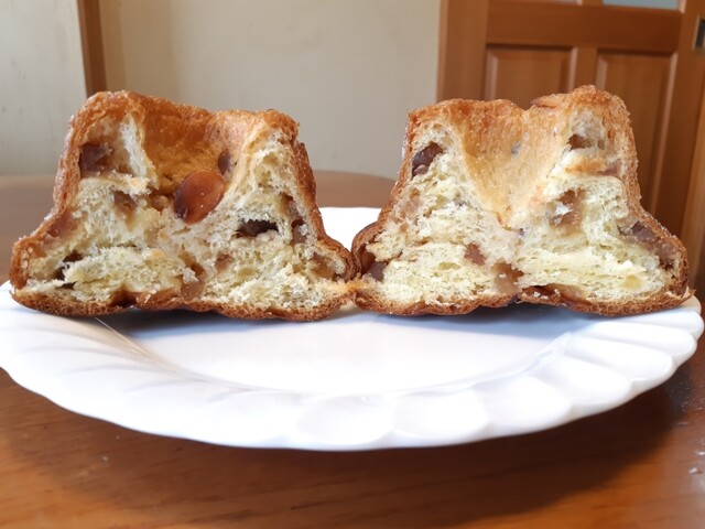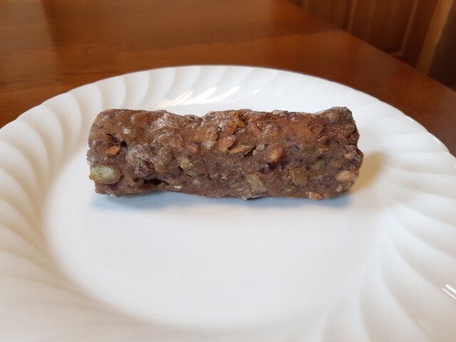 そしてレジにて、試作中のシュトーレンをいただいてその場で食べました!いちごとピスタチオ!