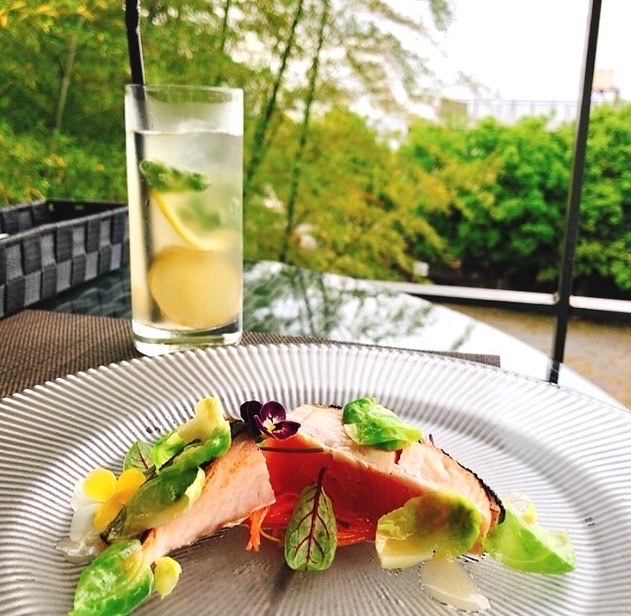 広いお庭の向こうに相模湾を望み、グリーンシャワーが浴びれる、雰囲気最高レストラン「海to里」。テラス席はわんこOK。わんこ無しの私達も、気持ちが良いので、空いてる時はテラス席。以前、湯河原の極上フレンチ「エルルカン・ビス」の伊東シェフがプロデュースした「キッチン イトウ スタイル」という洋食の名店があったのだけれど、その店を、伊東シェフに任されていた大里シェフが腕を振るう。もちろん大里シェフは「エルルカン・ビス」で伊東シェフに師事。そんな大里シェフの美しくて美味しいお料理が、こんなお値段で提供されるなんて噓でしょ???ってゆうぐらいビックリする価格設定。ディナーは4,950円だし、ランチは2,750円と3,850円。もっとお手軽なアラカルトメニューもいっぱいあるんだけど、コースが断然お得。今日いただいた2,750円のコースでは、メインの前に、稚鮎のフリット、アメーラトマト、北海道桜鱒のレアグリル、じゃがいものポタージュと、既に超豪華。メインはハンバーグと豚カツをチョイス。「キッチン イトウ スタイル」の時もこの2つが私達の大好きツートップだったなー。極めつけはランチコースに550円プラスすることで提供される飲み物とデザート。写真の2皿と飲み物(コーヒーか紅茶か4種から選べるハーブティー)がたったの550円。あり得ない(笑)。間違ってる(笑)。人件費とか利益とかいう概念が欠落してる(笑)。どんな小さな焼菓子にまで全部大里シェフの魂がこもってる。サービススタッフのお姉さんも、「キッチン イトウ スタイル」を仕切ってらした方。お客さんとの適度な距離感がとても心地良い、プロフェッショナル。いつも伺う度に、「値上げした方が良い」って言ってみるんだけど、もう何年もこの価格設定。だから、超人気店。真鶴では右に出るものがいないほどの存在感放ってる。ずっと真鶴にいて欲しいレストラン。
