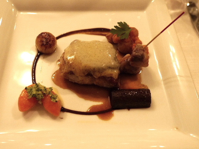 ディナーの中途で甘いものが出てくるのは慣れていませんが、七面鳥にジャム(クランベリーソース)を添える感覚に近いのかなぁ。