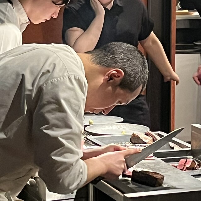 中川シェフが中心となり、ソムリエ、スタッフ一丸となった流れるようなオープンキッチンパフォーマンスは圧巻。山形食材のフュージョン料理に酔いしれます。