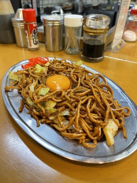 マストのソース焼きそば。トッピングの生卵(50円)はこんな風に出てきます。
