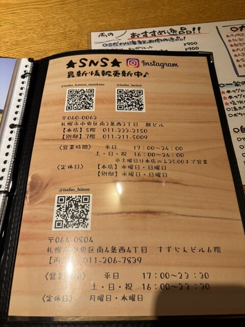 この度は地酒と道産食材 一笑 丙へご来店いただき、誠にありがとうございます。