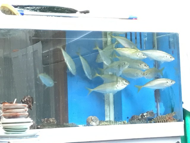 生簀水槽から揚げた活きの良いアジを目の前で捌いてくれます。