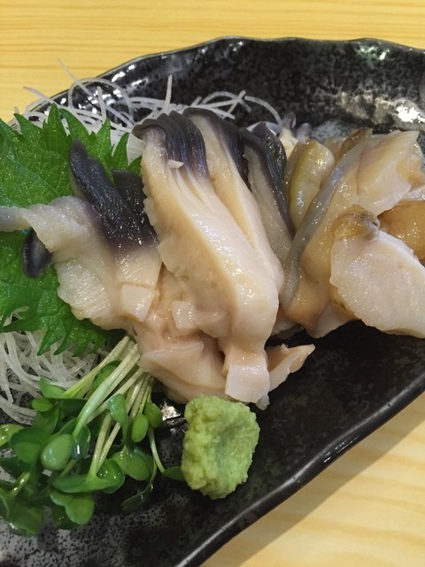 活つぶ造り 1,500yen&ヤリイカ造り 850yen