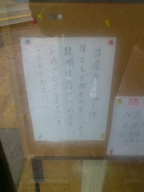 「当店のメニューはほとんどがものすごいので説明しきれません。公式ブログみてください」とか。