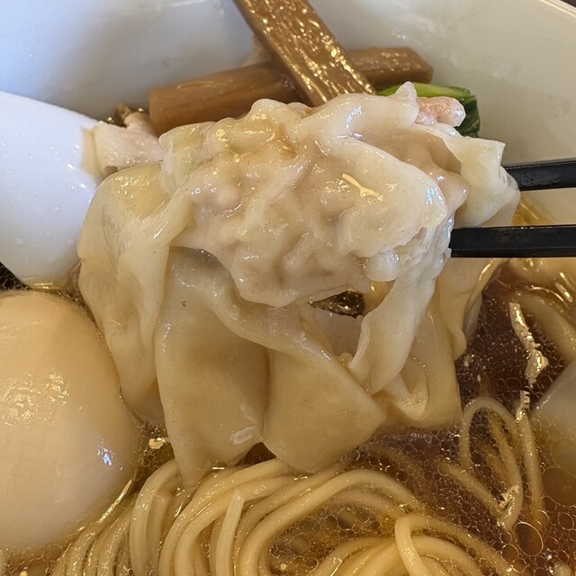 具は、2種な豚チャーシュー柔らかく旨味たっぷり。鴨は鴨のクセが抑えられ食べやすい。拍子木メンマは色は濃いですが辛くない。甘みもあって美味しい。小松菜が爽やか。味玉は、キミがほとんど固まっていないのに白身が固まるギリギリでる茹でられている。神業みたいな味玉これだけでもご店主の熱心な仕事振りが見て取れます。完成度が高く一心不乱に食べ進みスープ一滴も残さずいただきました。