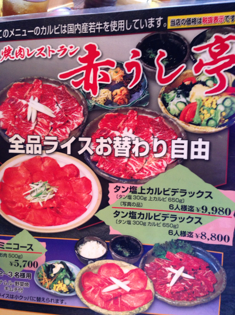 300gのたん塩、650gのカルビ、ライス、サラダ、ナムルのセットです。うっかり写真を撮り忘れ食べちゃいました! タン塩は大ぶりで柔らかく大変おいしかったです。カルビもしっかりさしのはいったものでした。以前夕食で来たときより肉質は良いのではないでしょうか?