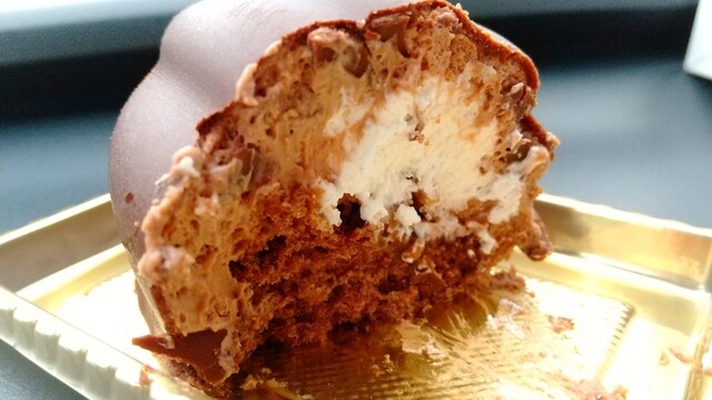 カカオの形をしたチョコケーキは、パリッとしたチョコレートの中に、ムースっぽいチョコクリームと生クリーム、チョコスポンジケーキが隠れていました。 見た目が可愛くて選びました(*^o^*)