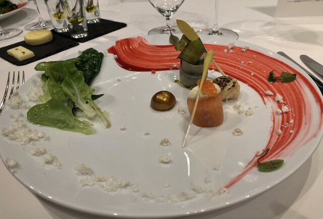 前菜は、蟹の身とトビコをあしらったサラダ。プチプチとした食感と旨み...
