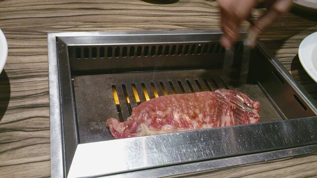 注文したのは、時価の野原焼き(焼きすき)と、カルビなど焼き肉3種と、オムライスなど。