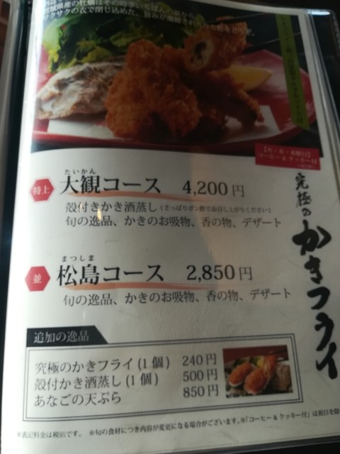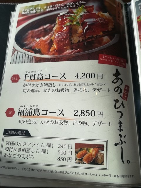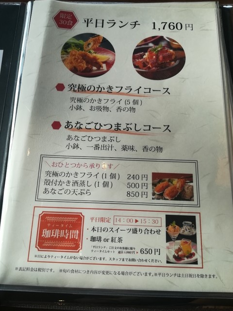 メニューは、穴子か牡蠣のメニュー。