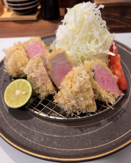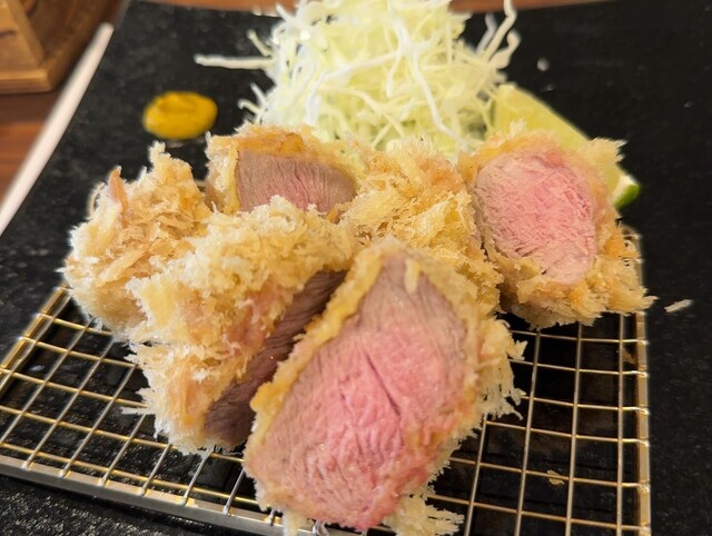 いゃ〜ヒレカツは言うまでもなく美味しいですが、牛カツも高級鉄板焼きのお店で頂くように肉質の和牛でとても美味しかったです♪