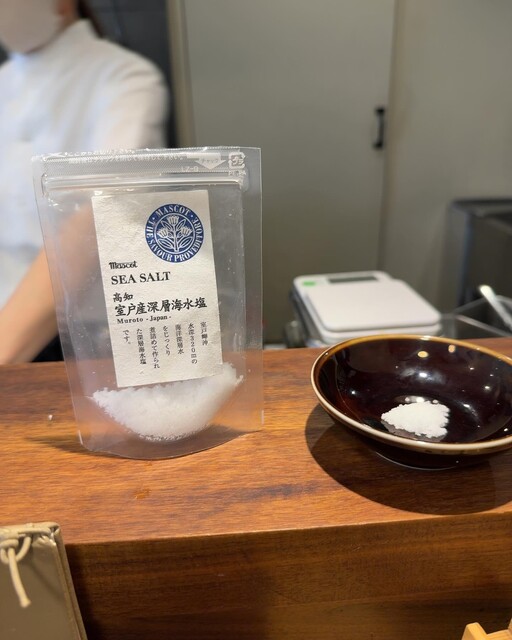 前回は小笠原のお塩をご厚意で頂きましたが、今回はご常連さんから頂いたフランスのお塩を出して頂きました。
