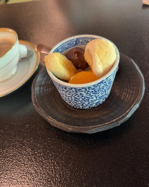 古民家からのお庭を愛でながらお蕎麦を手繰り、スペシャルデザートのモンブランを頂きました。今年の栗は栗鼠に結構食べられてしまったと店主さんが残念がっておりましたが、最中が底の中にはアイスが入ったモンブランはとても美味しかったです♪