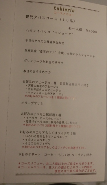 贅沢タパスコース4000円を注文!