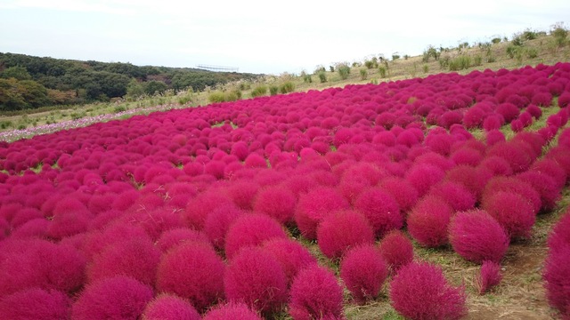 春の青いネモフィラも素敵ですが、緑から赤に変わるコキアも素晴らしい。