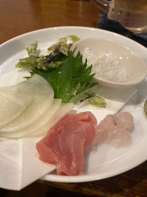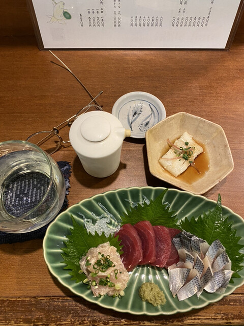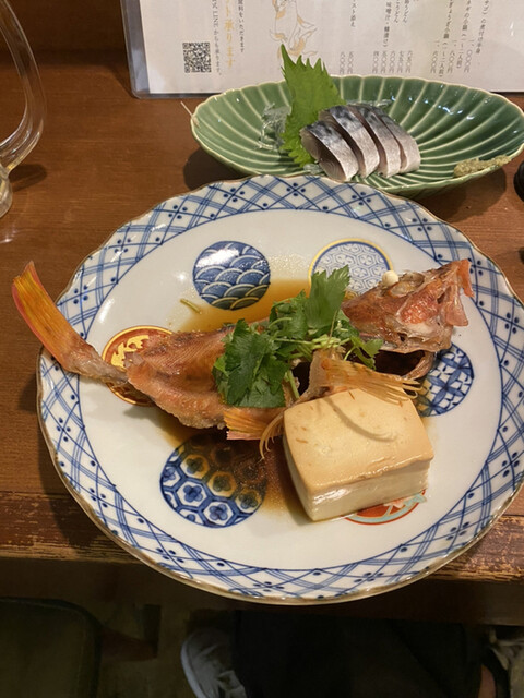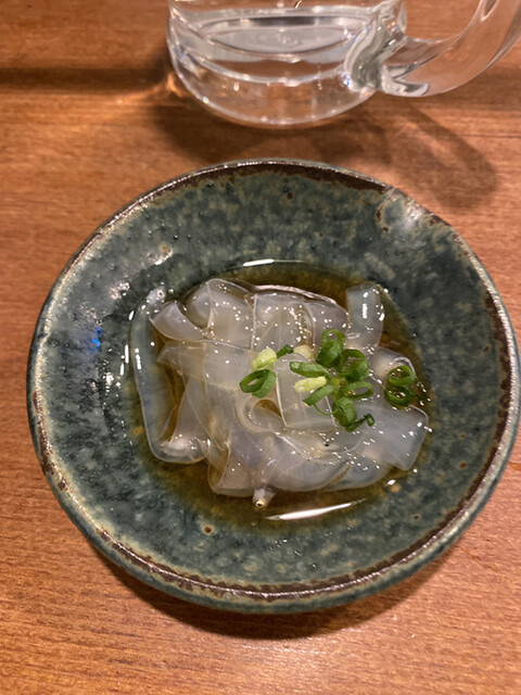 お通しはクエ煮物にお酒はフグひれ酒です。贅沢なスタート!
