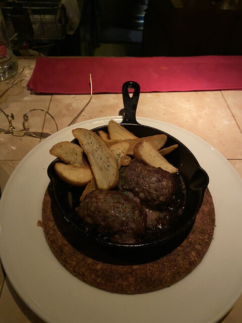 イワシのカツレツ?うまいです。ここは激渋です。ハンバーグがオススメです。音楽と酒。