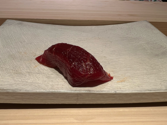 まずは宮城県塩釜の本鮪の大トロ。すごい包丁捌きでスジもない。めっちゃ甘くて美味しい!ヤバい、ヤバすぎる!