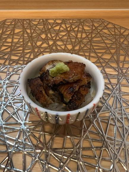 うなぎのひつまぶしは、生姜と紫蘇と胡麻入りのシャリ。