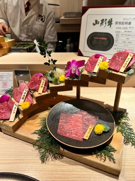 目の前でお肉を用意してくれている調理風景を見ながら楽しめるの。このライブ感がいいね。