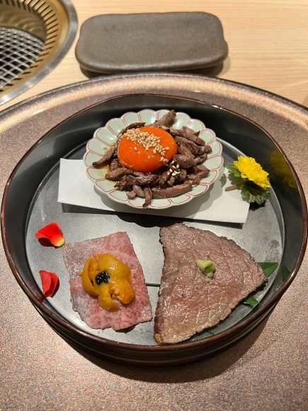 左下はとろける和牛うに包み、こ〜れは本当にとろけた。右下は和牛レアステーキだけど、ちょっと多めに焼き入れてもらいました(笑)