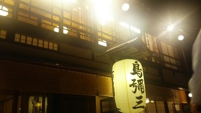 夏の京都で夕食と言えば一度は鴨川沿いの川床で優雅に美味しいモノをいただきたいもの。と言う事でやって来ました「鳥彌三」さん。こんな老舗のお店なんてなかなか来れるもんじゃないから、本当に楽しみです。まず、お店に入店し、その歴史を感じる趣に少し気後れしながらも、気持ちが高鳴っている自分に気付きます。そして川床に通され夏の京都の夜風を感じながら、仲居さんについでもらったビールを飲むと、もうこれ以上ない至福の気分になれますねぇ。そして、運ばれてきた色々な先付けや湯引きした鱧等をいただきながら、今日のメインである水炊きが出来上がるのを待ちます。しかし、この白濁したスープは見た目からして食欲をそそりますねぇ。たまらず仲居さんにお願いして、このスープを一口だけ先にいただいたのですが、これがチョ~美味い!コクがありながらも決してしつこくない上品なスープです。これにラーメンを入れて食べたら美味いんだろうなぁ、と思った私は悲しい程庶民だなぁ・・・。そうこうしているうちに件の水炊きができあがり、各自に取り分けていただいたモノいただきます。鳥は脂身が少ない身の締まったお肉です。当然ですが変な臭みなんか皆無で、鶏肉の旨味がぎゅ~っと凝縮された感じです。うん、めっちゃ美味い!この鍋の中には鶏肉以外に餅、麩、豆腐、椎茸、白菜なんかが入っているのですが、このスープが染み込んだ具材がまた美味いんですよ。特に白菜が最高。白菜のサッパリ感とスープのコクが合わさり絶妙の味わいになっていますねぇ。水炊きを食べ終わるとこのスープで雑炊を作っていただけるのですが、これがまた最高!今まで食べた雑炊の中で間違いなく最高に美味い雑炊でした。最後にデザートと言うか水物のわらび餅をいただき、ご馳走様。いや~、本当に美味しい水炊きでした。最高です。