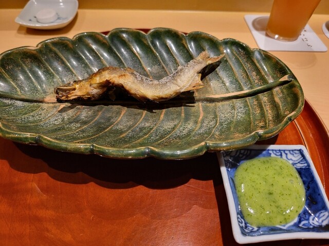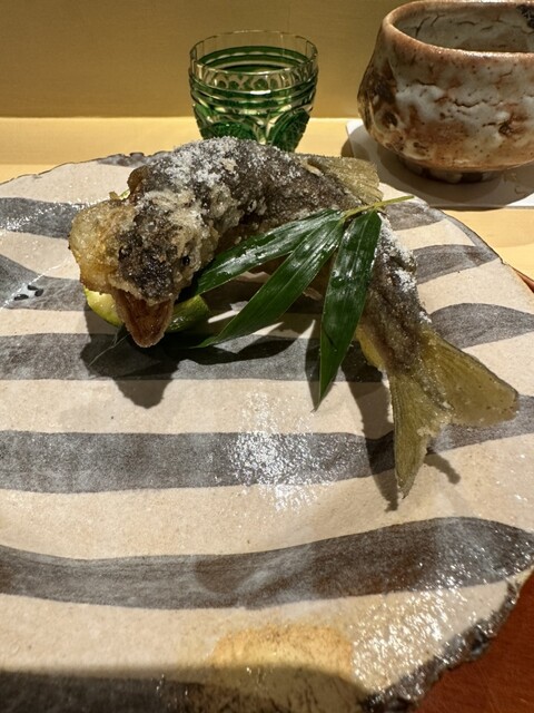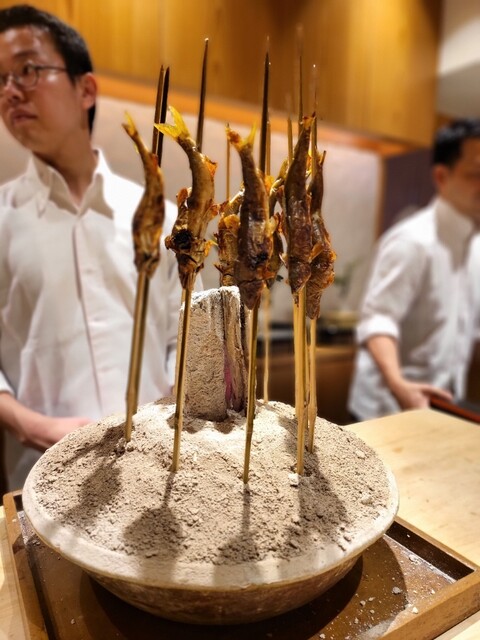 ・稚鮎が登場。鴨茄子の味噌田楽と一緒に。