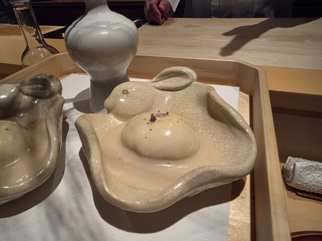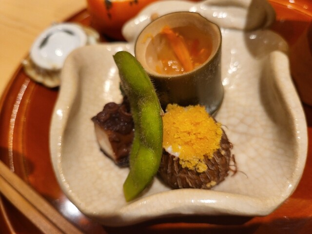 ◆卵豆腐、瀬戸内の雲丹、加減酢の煮凝り